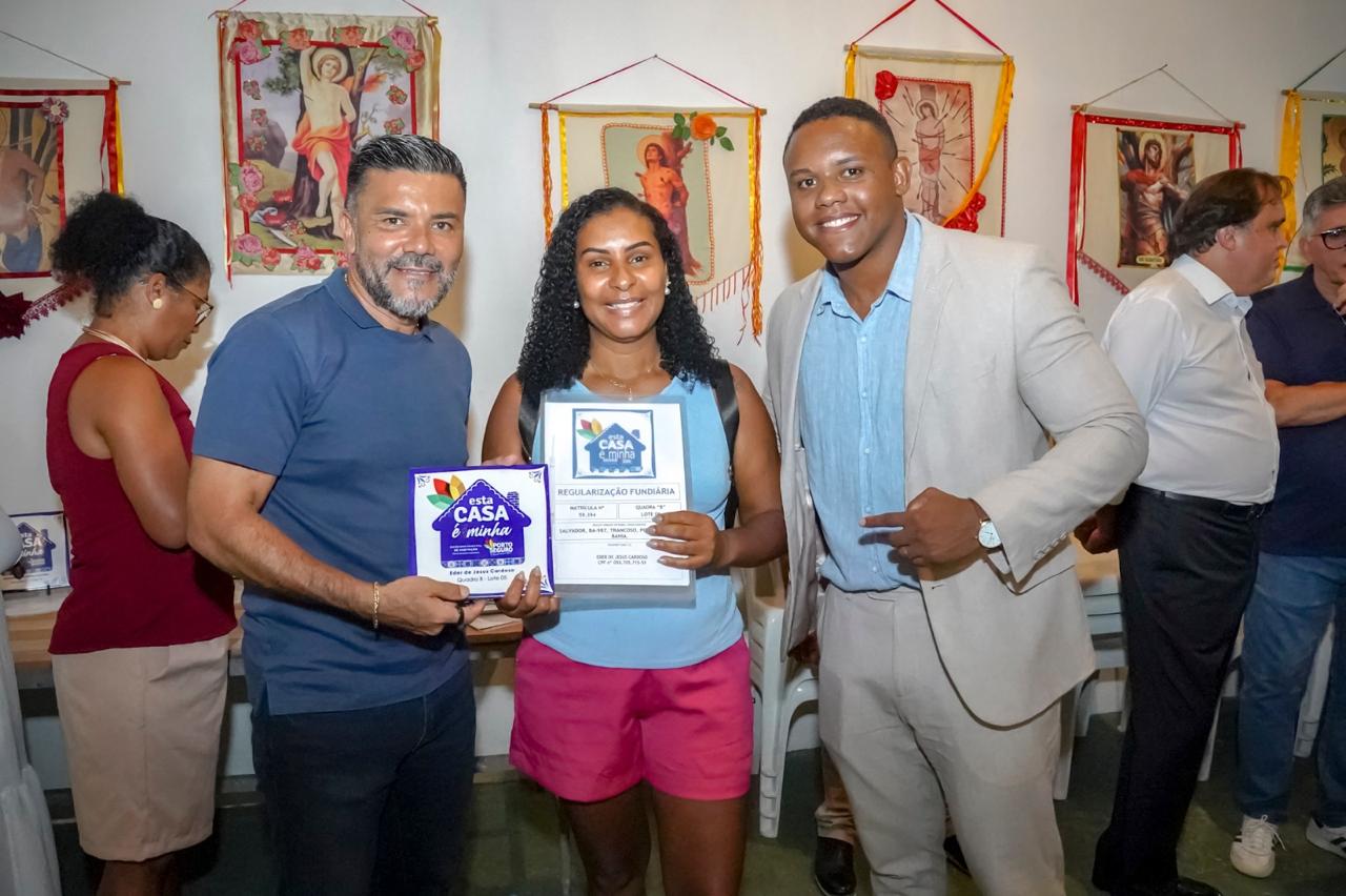 A Prefeitura de Porto Seguro, por meio da Secretaria Municipal da Habitação, entregou 70 títulos de regularização fundiária a moradores do bairro Salvador, no distrito de Trancoso, na tarde deste sábado (24). A cerimônia foi realizada na Casa das Festas, no Quadrado, e reuniu autoridades municipais, representantes do Judiciário e moradores da comunidade beneficiada.