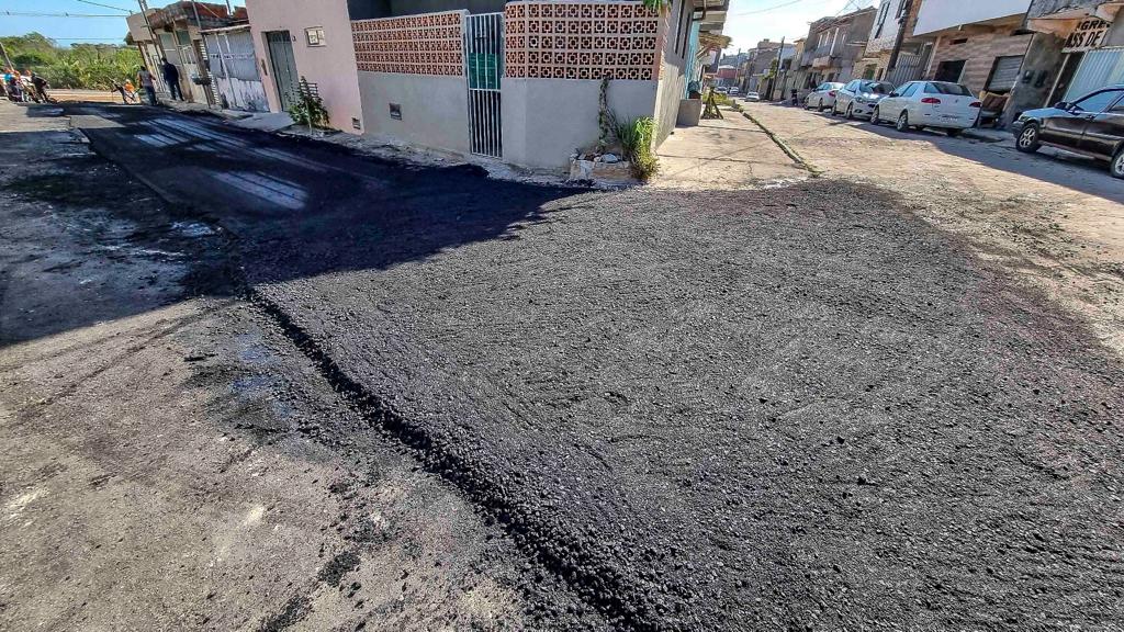 As máquinas estão trabalhando dia e noite e já lançando o asfalto na Rua Lisboa, Travessa Lisboa e Rua Nelson Soares. Toda a base e sub-base do solo estavam em preparação para que finalmente os trabalhos fossem concluídos com a camada asfáltica.