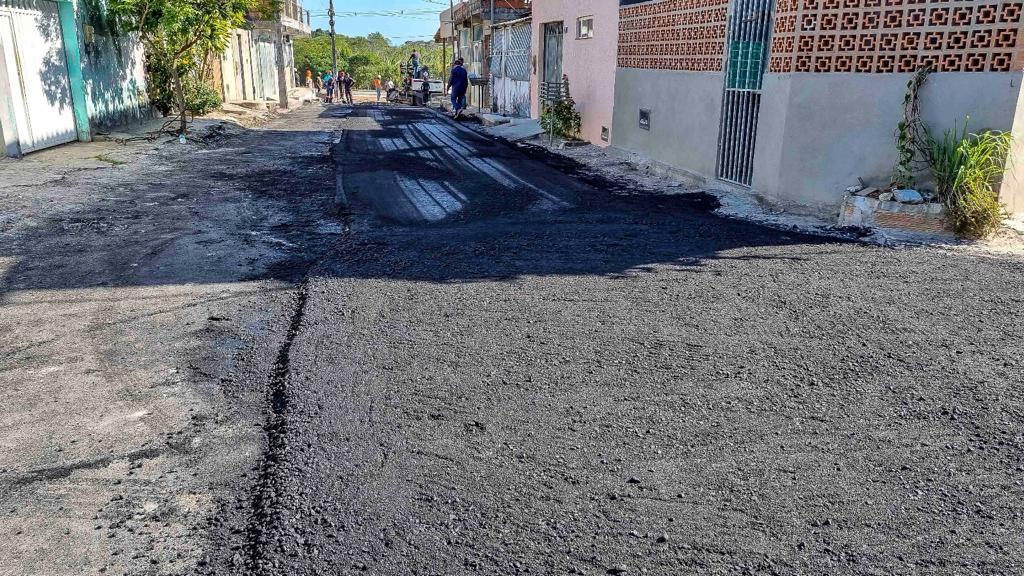 A Prefeitura de Porto Seguro está executando o serviço de pavimentação asfáltica de ruas no bairro conhecido como Areial, no Mercado do Povo, Baianão.