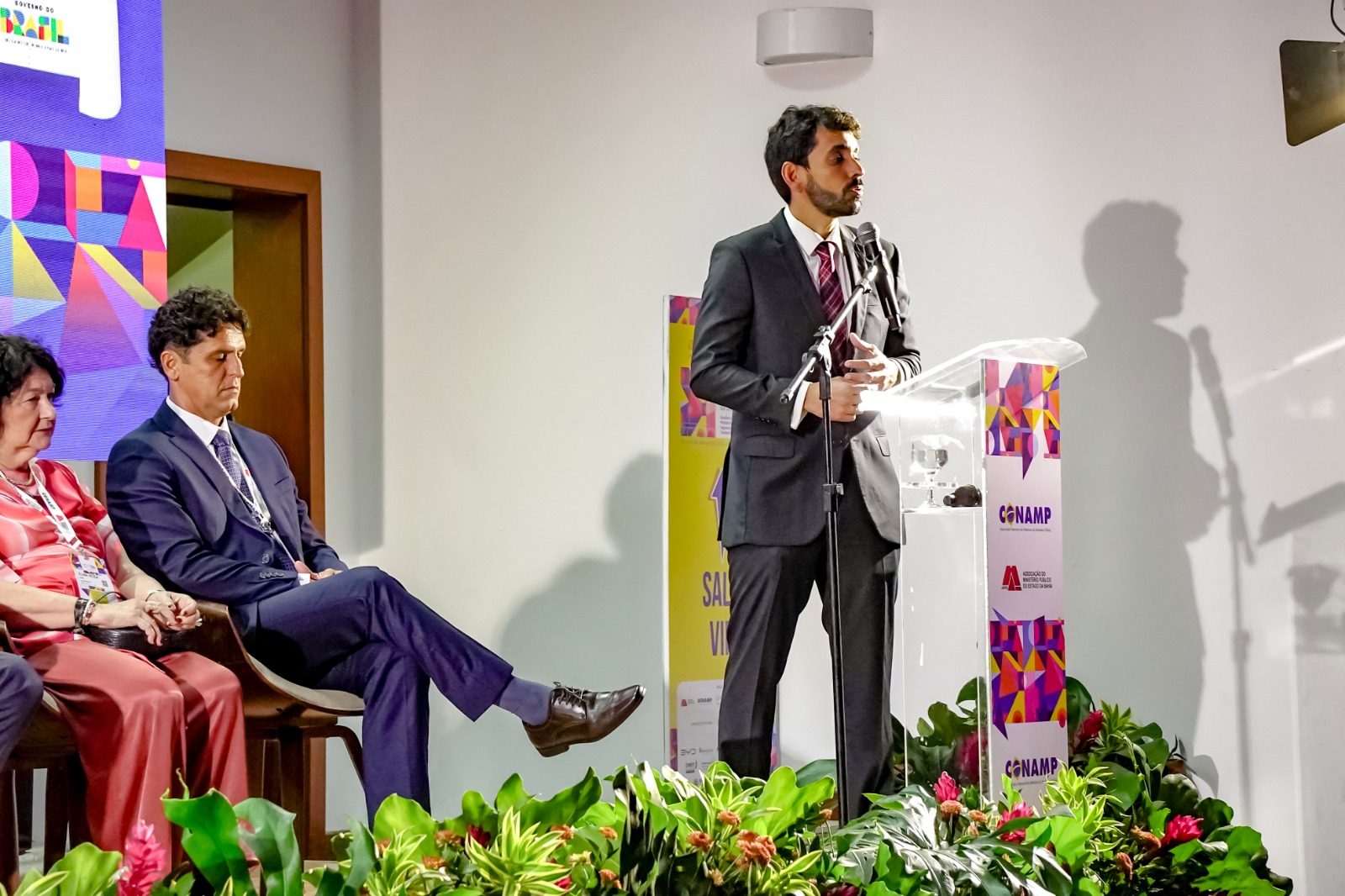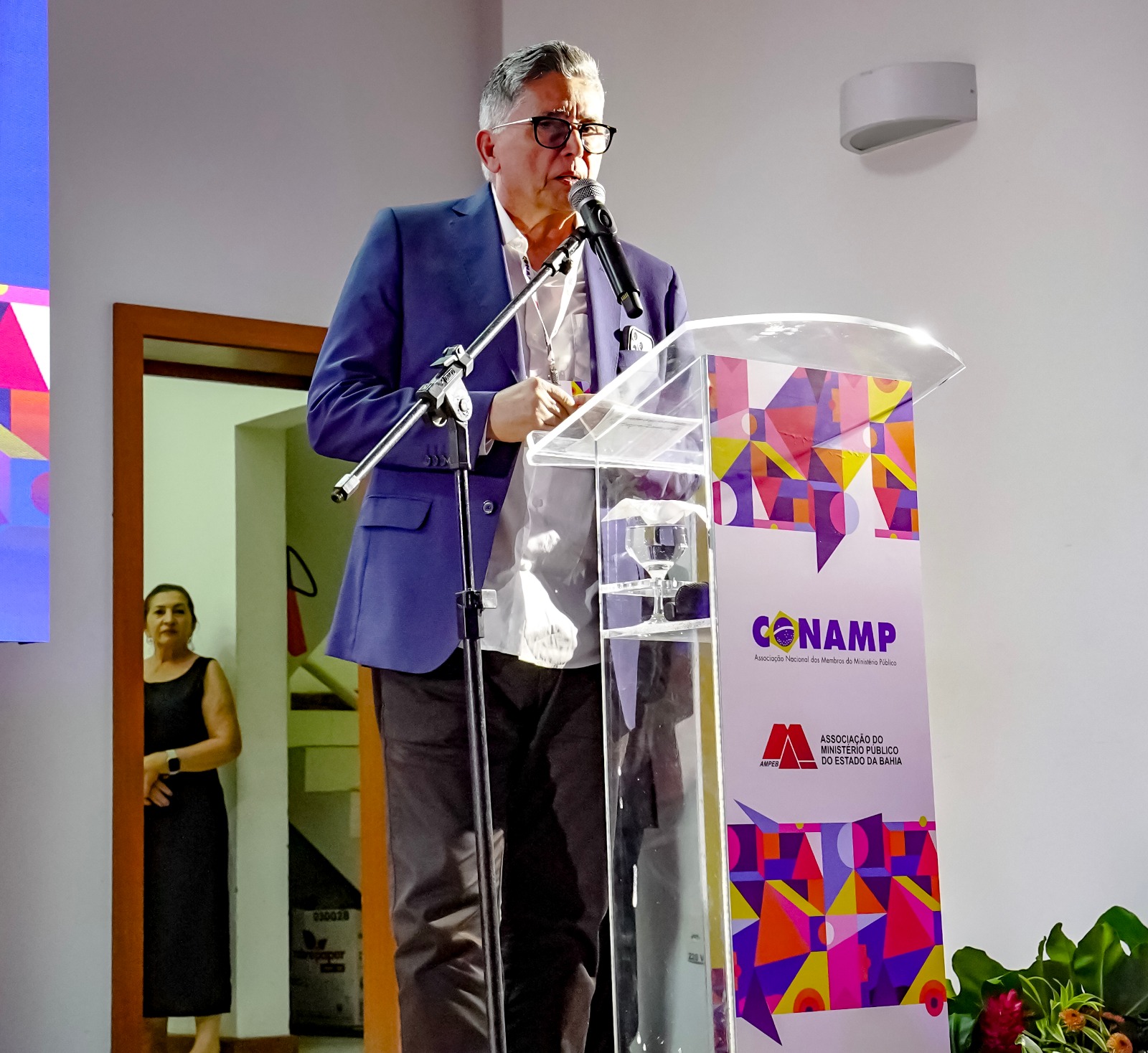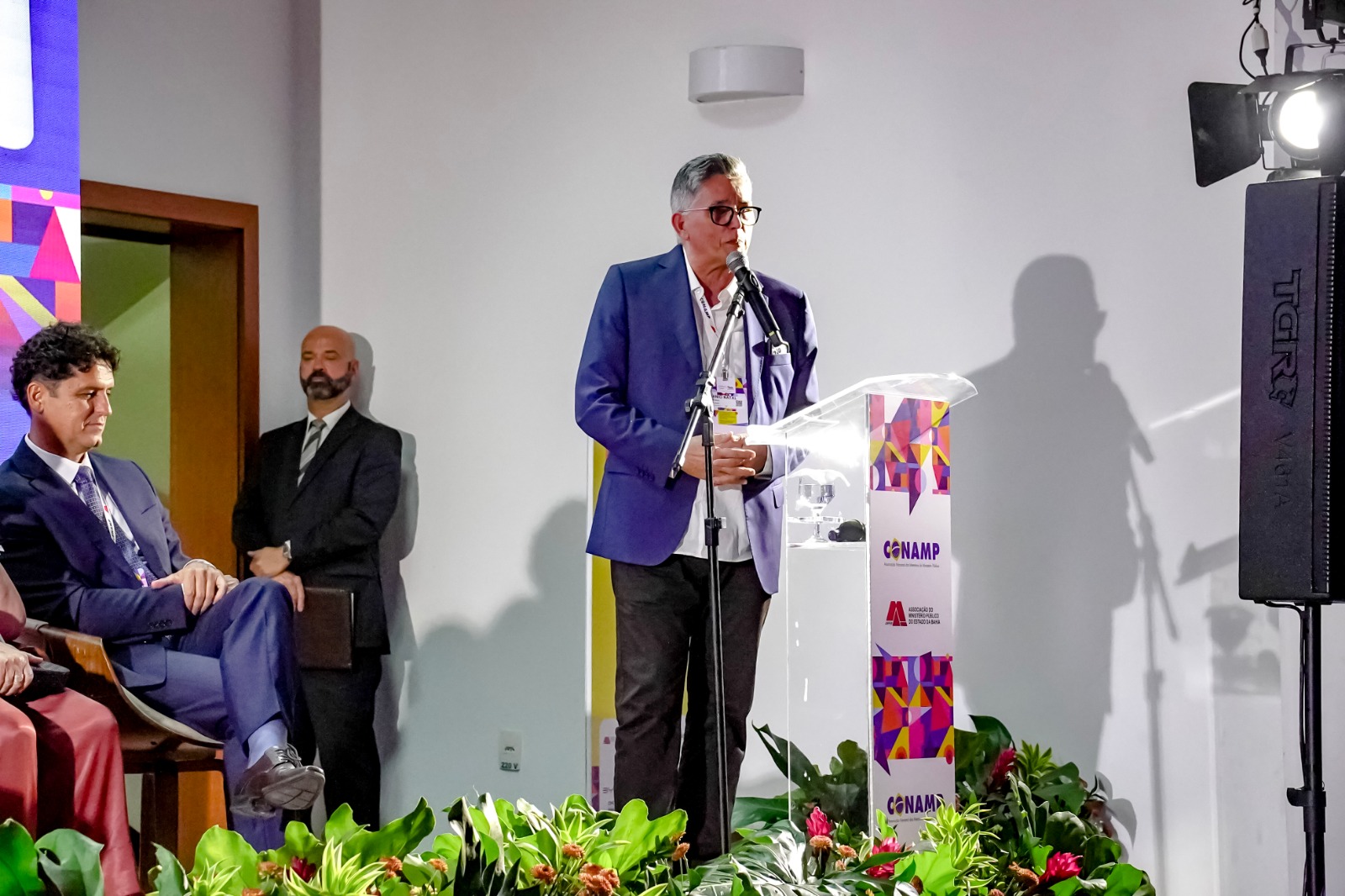 A solenidade de abertura contou com a presença do prefeito Jânio Natal, acompanhado do vice-prefeito Paulo Onishi, que deram as boas-vindas aos participantes à Terra Mãe do Brasil, recebendo o presidente da AMPEB, Lucas Santana, representando o presidente da CONAMP, Tarcísio Bonfim; o secretário de Justiça e Direitos Humanos da Bahia, Felipe Freitas, representando o governador Jerônimo Rodrigues; a procuradora-geral adjunta do MP-BA, Wanda Valbiraci, representando o PGJ Pedro Maia; o conselheiro do CNJ, João Paulo Santos Schoucair; o corregedor-geral do MP-BA, Paulo Marcelo Santana Costa; a ouvidora-geral do MP-BA, Elna Leite Ávila Rosa; o coordenador das Promotorias de Porto Seguro, Bruno Gontijo; e a superintendente do Senac Porto Seguro, Nancy Costa.