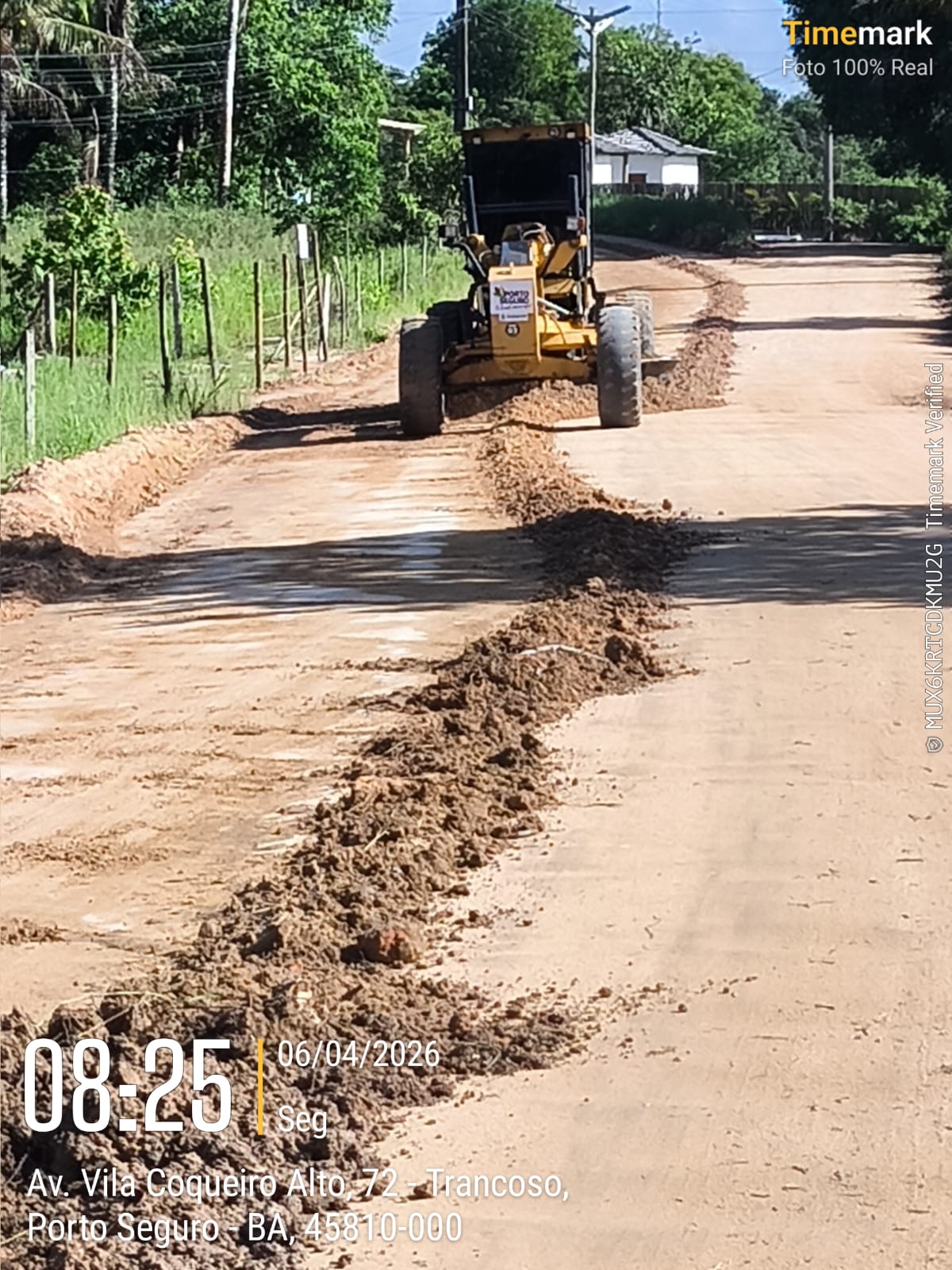 Coqueiro Alto, localidade próxima a Trancoso, está recebendo nesta segunda-feira, 6, os serviços de patrolamento nas ruas, atendendo a comunidade local e melhorando as condições de tráfego para moradores da região.