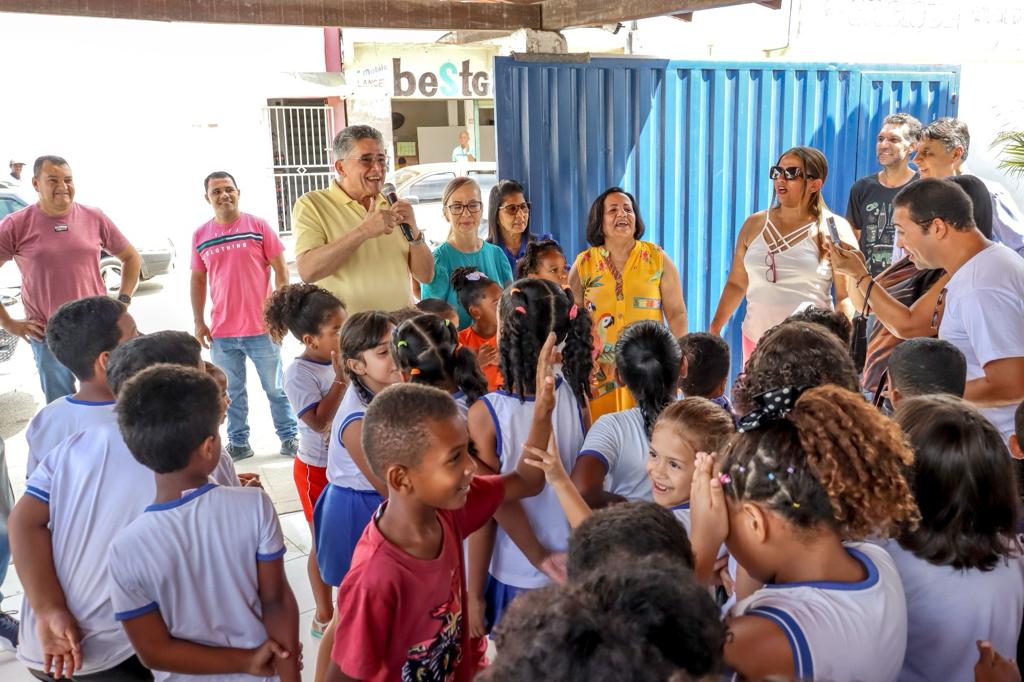 Durante a visita à escola, o prefeito percorreu as salas de aula, a biblioteca, a despensa e o refeitório, conferindo de perto a qualidade da alimentação escolar. Após a cerimônia de inauguração, todos os presentes desfrutaram de um generoso café da manhã com bolos, frutas e sucos.
