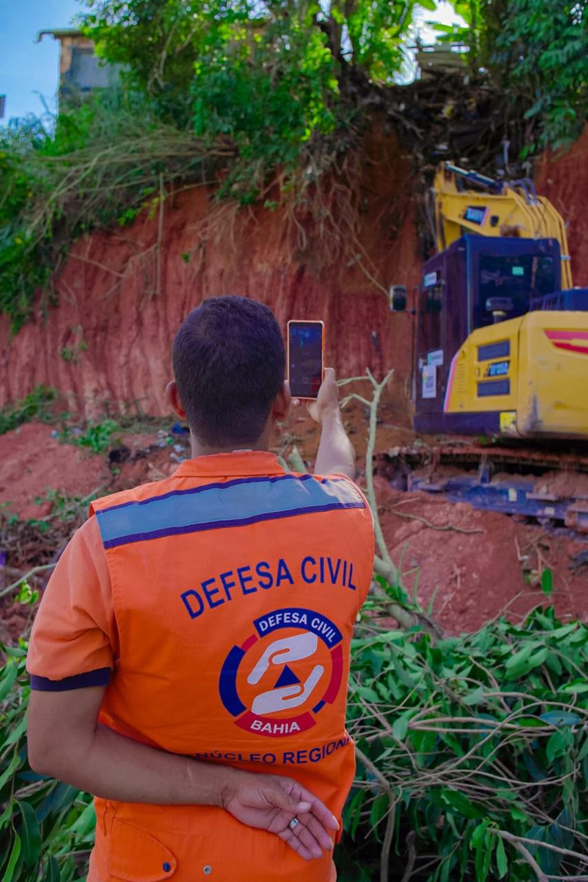Após o grande volume de chuva registrado na madrugada do último domingo, que ultrapassou os 120 milímetros em poucas horas, a Prefeitura de Porto Seguro mobilizou equipes e maquinário pesado para atuar na recuperação da Ladeira do Baianão, um dos principais acessos ao bairro. O deslizamento de terra provocado pela força da água causou grandes danos à via, exigindo uma rápida mobilização das equipes de campo.