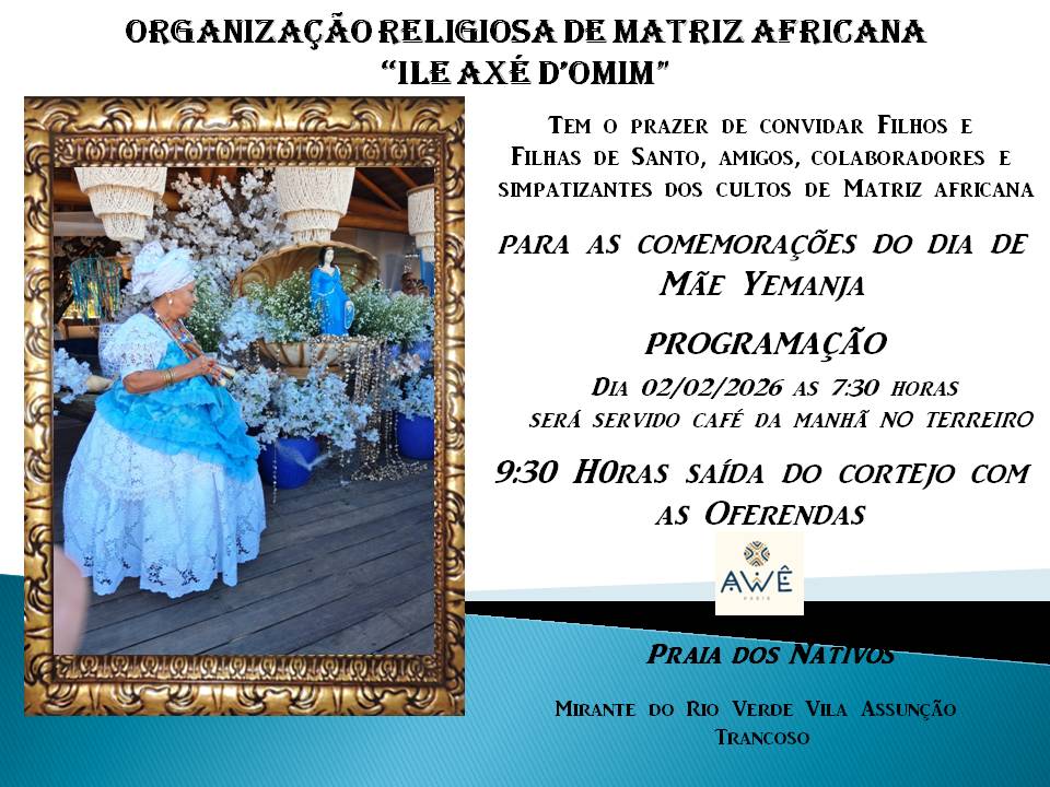 Iemanjá, a Rainha do Mar, segue como uma das devoções mais marcantes do calendário religioso e cultural de Porto Seguro, reunindo 26 terreiros, em fé, ancestralidade e pertencimento em celebrações que ocupam praias, ruas e terreiros. No dia 2 de fevereiro, todo o município entra no ritmo das homenagens, com cortejos, cantos, toques e entregas simbólicas que reafirmam a força das matrizes africanas e o respeito às tradições que atravessam gerações, envolvendo moradores, visitantes, praticantes e admiradores.