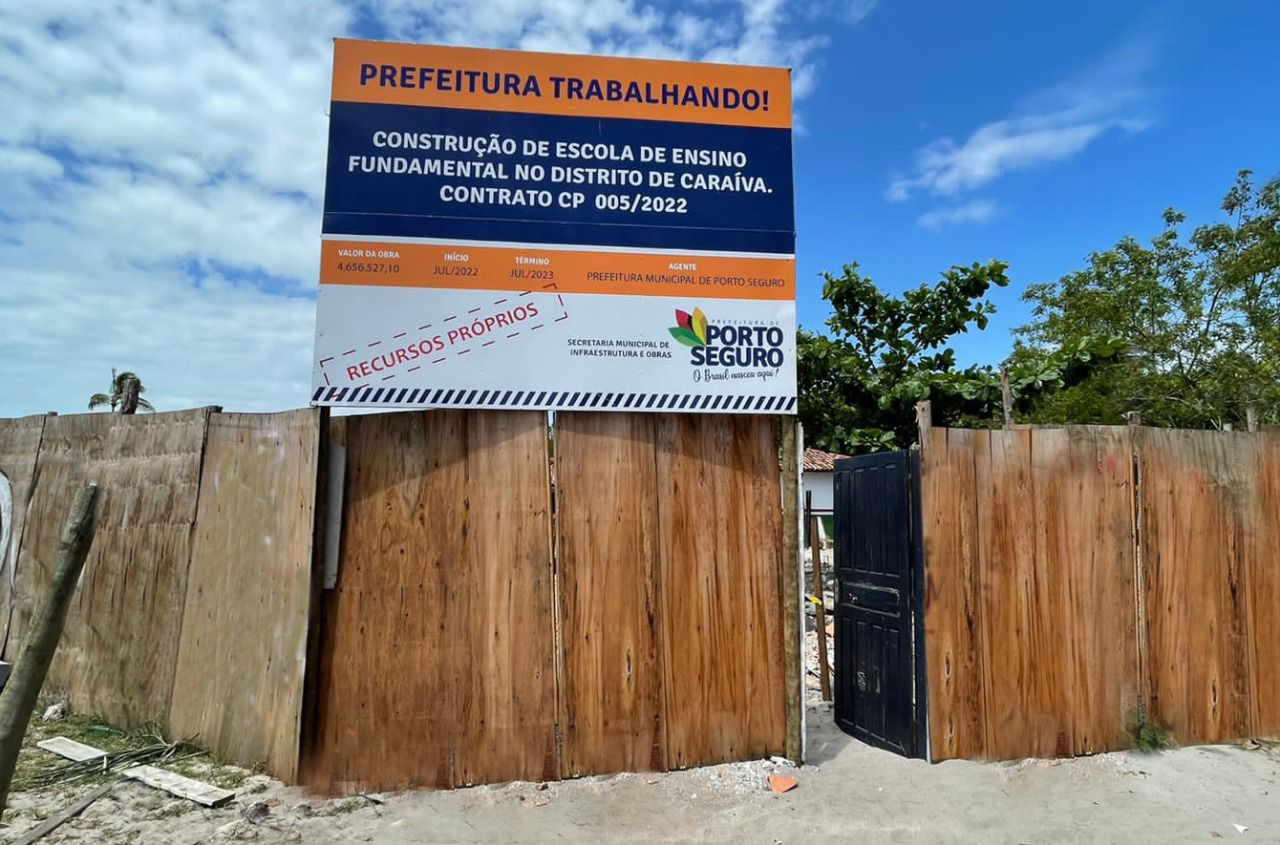 As obras de reforma da Escola Municipal de Caraíva seguem em andamento. Devido às péssimas condições do prédio anterior, a construção precisou ser demolida e iniciada do zero, para que possa oferecer condições dignas e seguras de ensino aos alunos da comunidade.
