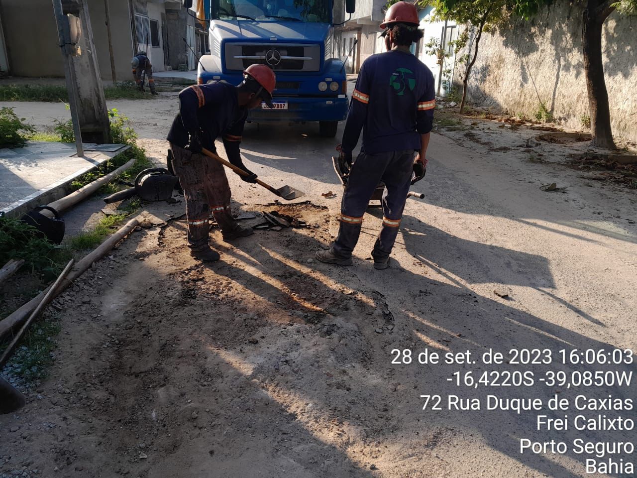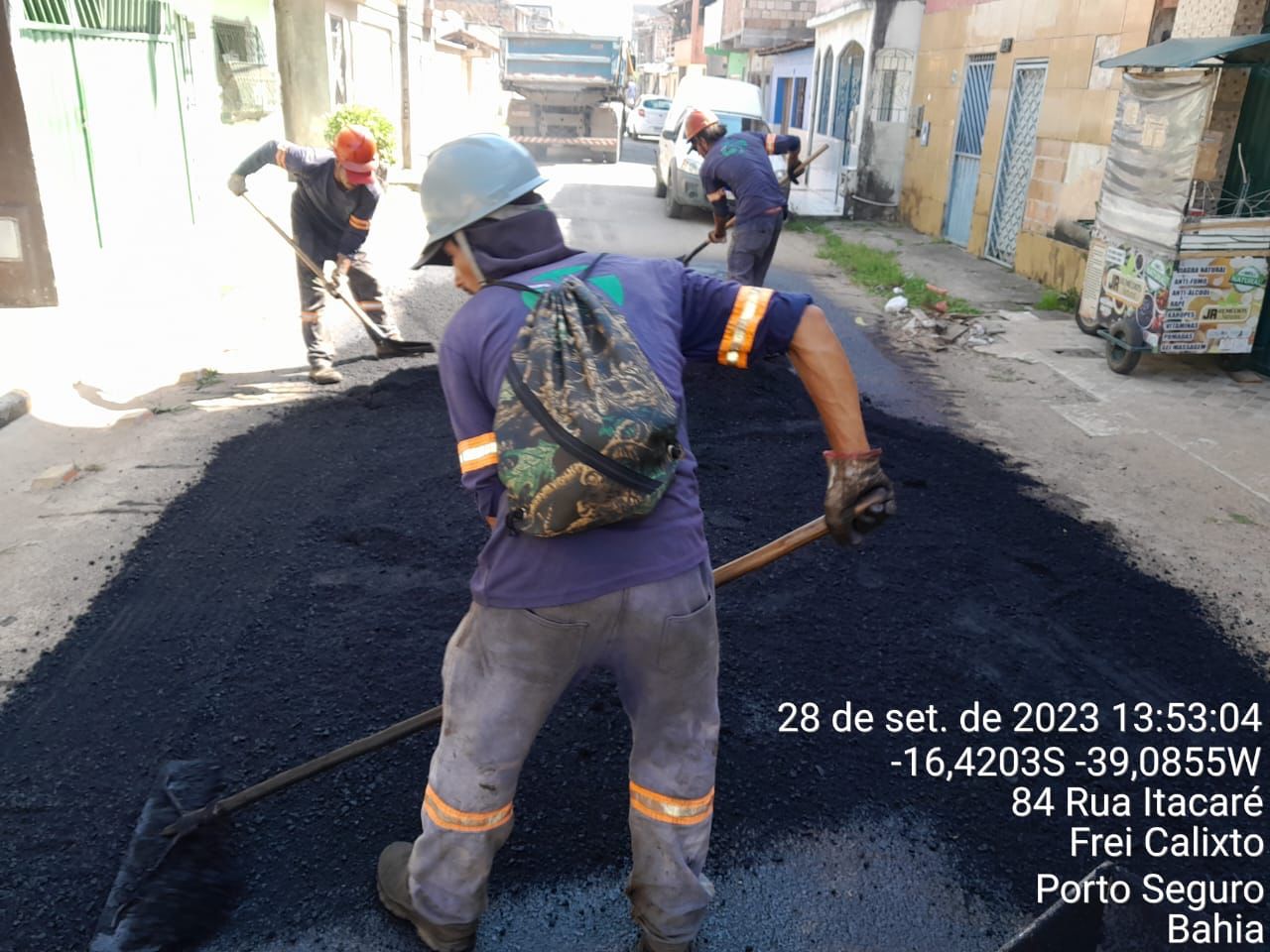 As equipes da operação tapa-buracos da Secretaria de Infraestrutura e Obras da Prefeitura de Porto Seguro estiveram, durante a semana passada, atendendo ao bairro Frei Calixto, no Complexo Baianão.