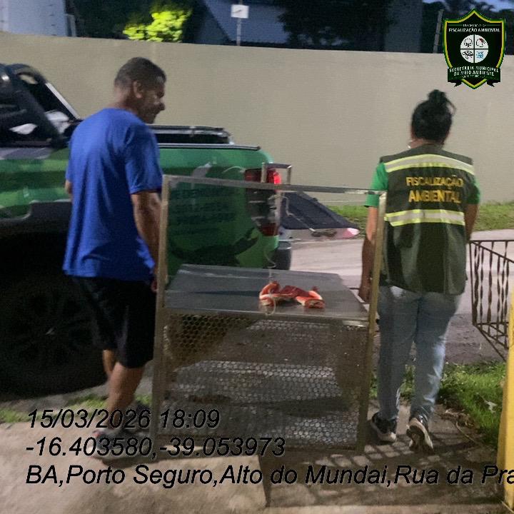 No Alto do Mundai, na Rua da Servidão, a equipe também resgatou um bicho-preguiça encontrado em área urbana, situação que poderia representar risco tanto para o animal quanto para moradores. O secretário de Meio Ambiente e Causa Animal, Jânio Jr., destacou a importância da atuação rápida da equipe. “Cada resgate representa um compromisso com a preservação da nossa biodiversidade. Nosso trabalho é garantir que esses animais recebam o cuidado necessário e possam retornar em segurança ao seu habitat natural”, afirmou.